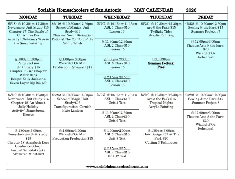 The Sociable Homeschoolers of San Antonio is a support group and learning pod for homeschooling families in and around the San Antonio area. Everyone is welcome! From classes, to field trips, to holiday potlucks, and mom's night out...We have plenty of events on our page to choose from. Jump right in!